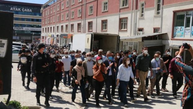 Mitinge izin verilmediği gerekçesiyle yürüyüşe engel olan polis ile HDP milletvekilleri arasında tartışma yaşandı. Yapılan görüşmelerin ardından yürüyüşe izin verilmemesi üzerine HDP binası önünde basın açıklaması yapıldı. Ardından Ehmedê Xanî ve Sanat Sokağı’nda toplanan halk, “Bila Kurdî bibe zimanê fermî û zimanê perwerdehiyê” pankartı ile yürüyen kitle sık sık “Bê ziman jiyan nabe” ve “Zimanê me hebuna me ye” sloganlarıyla HDP il binası önüne geldi.