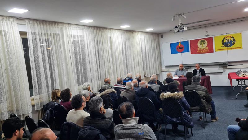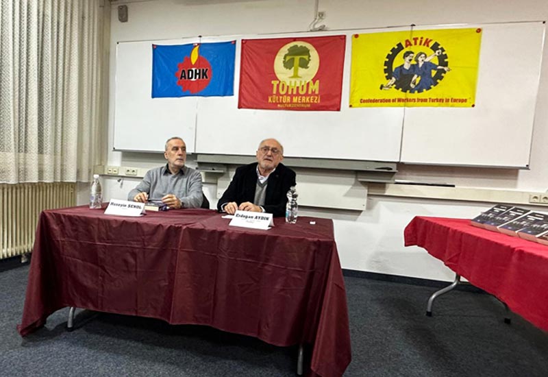 Tarihçi-yazar Erdoğan Aydın’ın Cumhuriyetin 100 yılına dair eleştirel bir değerlendirme sunduğu “Yanlış İliklenen Düğme” adlı kitabı üzerine gerçekleştirilen söyleşiler ilgiyle takip edilmeye devam ediyor. Bu kapsamda Güney Almanya’nın Ulm kentinde Almanya Türkiyeli İşçiler Federasyonu (ATİF) ve Almanya Demokratik Haklar Federasyonu (ADHF) tarafından Tohum Kültür Merkezi’nde düzenlenen panelde Erdoğan Aydın konuşmacı olarak yer aldı. Etkinlik, gerek içeriği gerek katılım yoğunluğu açısından dikkat çekiciydi.