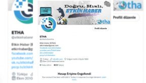 ETHA’nın haberlerini paylaştığı @etkinhaberetha ETHA’ya bildirilmeden mahkeme kararıyla engellendi. Ajansın web sitesine sürekli kapatma kararı gelirken bu kez de Twitter