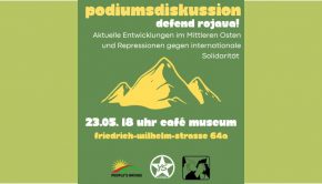 Almanya’nın Duisburg kentinde 10. Ivana Hoffmann Festivali kapsamında “Rojava’yı Savunalım” paneli düzenlendi Paneli sosyalist gençlik örgütüYoung Struggle, Peoples Bridge (Halklar Köprüsü) Rote Hilfe (Kızıl yardım) birlikte