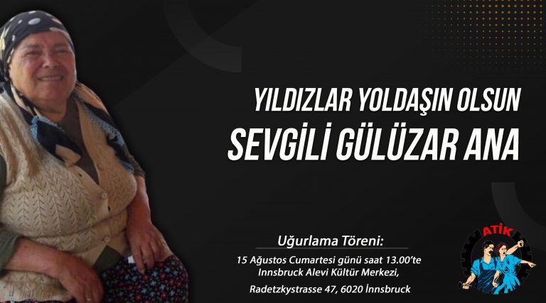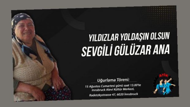 Uğurlama töreni, 15 Ağustos Cumartesi günü saat 13.00’te Innsbruck Alevi Kültür Merkezi, Radetzkystrasse 47, 6020 İnnsbruck adresinde gerçekleştirilecektir.”