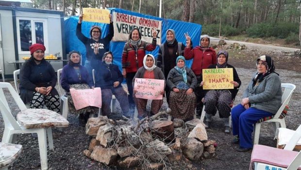 | Akbelen direnişi Akbelen Ormanı’ndaki 740 dönümlük alanda bulunan ağaçlar Yeniköy ve Kemerköy termik santrallerini işleten Limak Holding ve İÇTAŞ ortaklığındaki YK Enerji tarafından kesilmek istenmişti. Nedeni ise termik santrallere linyit sağlayacak açık maden ocağı yapmaktı. Şirket bunun için gerekli izin belgelerini de almıştı ancak İkizköylüler karara itiraz etmiş ve 22 Nisan’dan itibaren alanda nöbet tutmaya başlamıştı. 17 Temmuz’da Orman Genel Müdürlüğü’nün ekipleri Akbelen Ormanı’na gelerek ağaç kesmeye girişmişti. Ancak köylüler ekipleri engellemişti. 28 Temmuz’da başta Manavgat olmak üzere Türkiye’nin birçok yerinde yangınlar çıkmış ve uzun süre havadan destek sağlanmadığı için kontrol altına alınamamıştı. Bu yerlerden biri de Muğla’ydı. Yöre halkı yangınlara müdahaleyle ile uğraşırken bu kez de YK Enerji tarafından tutulan işçiler adeta fırsat bu fırsat diyerek ağaçları kesmişti. Yangınları bahane eden şirket işçileri bir günde 105 ağaç kesmişti. Yangınlarla boğuşan İkizköy halkı, ağaç kıyımına karşı eylem başlatmış, bölgeye jandarma gönderilmişti. Jandarma erleri nöbet tutan köylülere orantısız müdahalede bulunmuştu. Hem Muğla 3’üncü İdare Mahkemesi hem de Muğla 1’inci İdare Mahkemesi, yürütmeyi durdurma kararı alarak bölgede yeniden keşif ve bilirkişi incelemesi yapılmasını talep etmişti. Davada sahayı incelemesi kararlaştırılan bilirkişinin keşif tarihi mahkemece son dakikada ertelenmiş, İkizköy KARDOK Derneği’nin açtığı davanın keşfi ise 7 Eylül olarak belirlenmişti. Bilirkişi keşfi sırasında hakimin avukatlara hakaret etmesi nedeniyle davacı İkizköy avukatları Arif Ali Cangı ve İsmail Hakkı Atal ile Adana Barosu’ndan Şiar Rişvanoğlu reddi hakim başvurusu yapmıştı. Avukatların itirazlarıyla yeniden yapılacak bilirkişi keşfinde heyetten bir kişinin Covid-19’a yakalanması nedeniyle 8 Şubat’ta yapılacak bilirkişi keşfi, 1 Mart’a ertelenmiş, aynı gün maden yönetmeliğinde değişiklik yapılarak zeytinlikler madencilik faaliyetlerine açılmıştı. Muğla Valiliği, Milas ilçesindeki İkizköy Mahallesi’nde genişletilmek istenen kömür madeni için Çevresel Etki Değerlendirme (ÇED) sürecinden muaf tutulan kömür taşıma bandının yapımını durdurmuştu. Bu arada maden şirketi alana 22 bin zeytin ağacı dikildiği de iddia etmişti. |