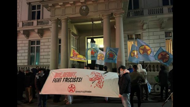 Sosyalist gençlik örgütü Young Struggle Londra, geçtiğimiz günlerde Paris’te ACTIT derneğine ve sosyalist gençlik örgütü Young Struggle’a gerçekleştirilen faşist saldırıyı protesto etmek amacıyla Fransız Elçiliği önünde bir eylem düzenledi.
