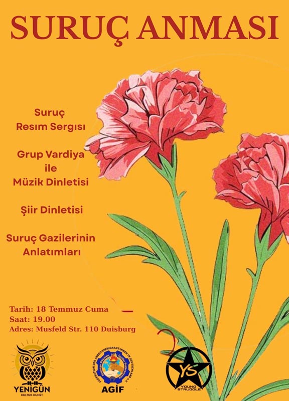 Suruç’un yıldönümü yaklaşırken sosyalist gençlerde çalışmalarını hızlandırdı. Duisburg-Essen Üniversitesi dün ve bugün bu çalışmaların yapıldığı mekan oldu.