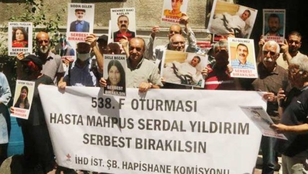 İnsan Hakları Derneği (İHD), hasta tutukluların sağlık durumuna dikkat çekmek için her hafta yaptığı “F Oturumu” eyleminin 538’incisini dernek binası önünde gerçekleştirdi.