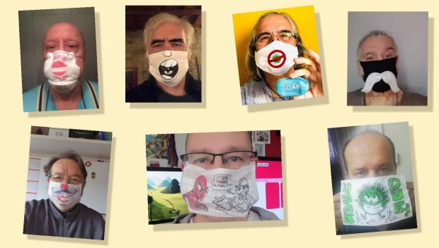 Kovid-19 sebebiyle yetkili kişi ve kurumların maske takma çağrısı üzerine bir grup mizahçı ve çizer, maskelerin üzerine çizdikleri karikatürleriyle maske takmanın önemine dikkat çekerek çağrıya destek oldu.