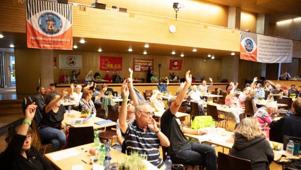Birleşik Cephe Eş Başkanı Monika Gärtner-Engel, 6 Eylül 2025’te yapılan Zimmerwald Konferansı 2.0’da kabul edilen sonuç bildirgesini açıkladı. Engel, konferansın 28 ülkeden 280 katılımcıyla gerçekleştirildiğini, demokratik tartışma kültürü içinde farklı akımların bir araya geldiğini belirtti. Bildirgede, dünya savaşı tehlikesi ve faşizme karşı en geniş birliği oluşturma çağrısı yapıldı.