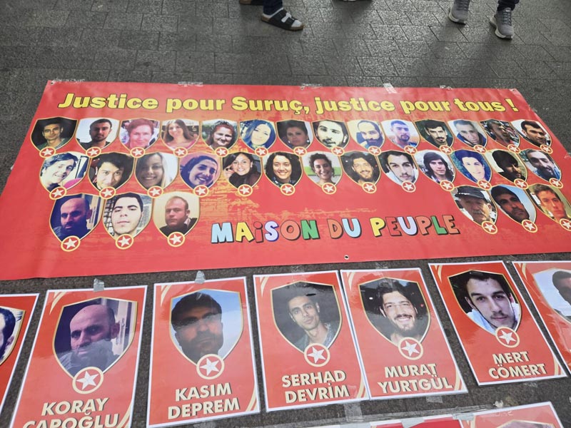 Saat 15:00’te başlayan yekem, katledilen gençlerin fotoğrafları taşınırken, “Suruç için adalet, herkes için adalet” pankartı açıldı.