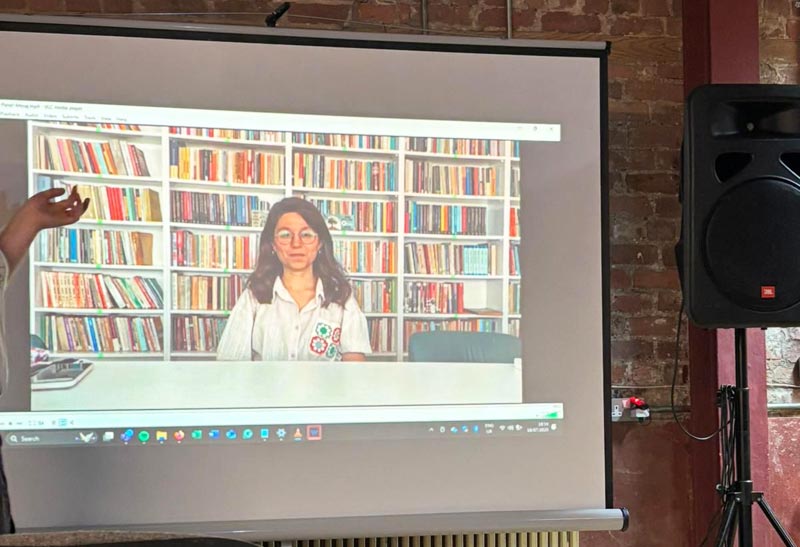 Filmden sonra, gençler Suruç Katliamı’ndan sağ kurtulan bir sosyalistle görüntülü konuşma gerçekleştirdi. Katılımcılar, SGDF’nin “Birlikte savunduk, birlikte yeniden inşa edeceğiz” kampanyasına dair deneyimleri dinlediler. İzleyiciler, İngilteredeki mücadeleyi şekillendiren çeşitli sorular yöneltti. Sorular faşist koşullarda sosyalist örgütlenmeye ve Şehîd Cebrail Günebakan örneğiyle komünist gençlik önderliğine yönelikti.