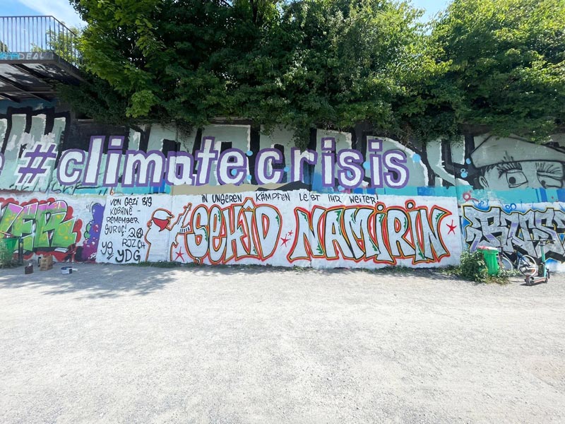 Graffiti, 33 Düş Yolcusu’nu anmak ve onların isimlerini ve hikayelerini Zürih’te daha iyi tanıtmak için yapıldı. Graffitide ayrıca şu belirtildi: “Gezi’den Kobanê’ye – Suruç’u hatırla!” Böylece Gezi’deki gençlerle, hayatlarını Kobanê’yi savunarak geçiren savaşçılar arasında bir bağ kuruldu.